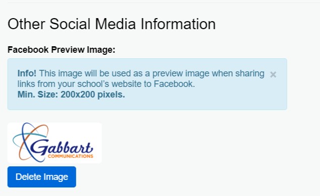 3. Click Choose File to upload a Facebook Preview Image in this section. A good option is a school logo or mascot image.