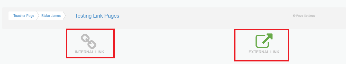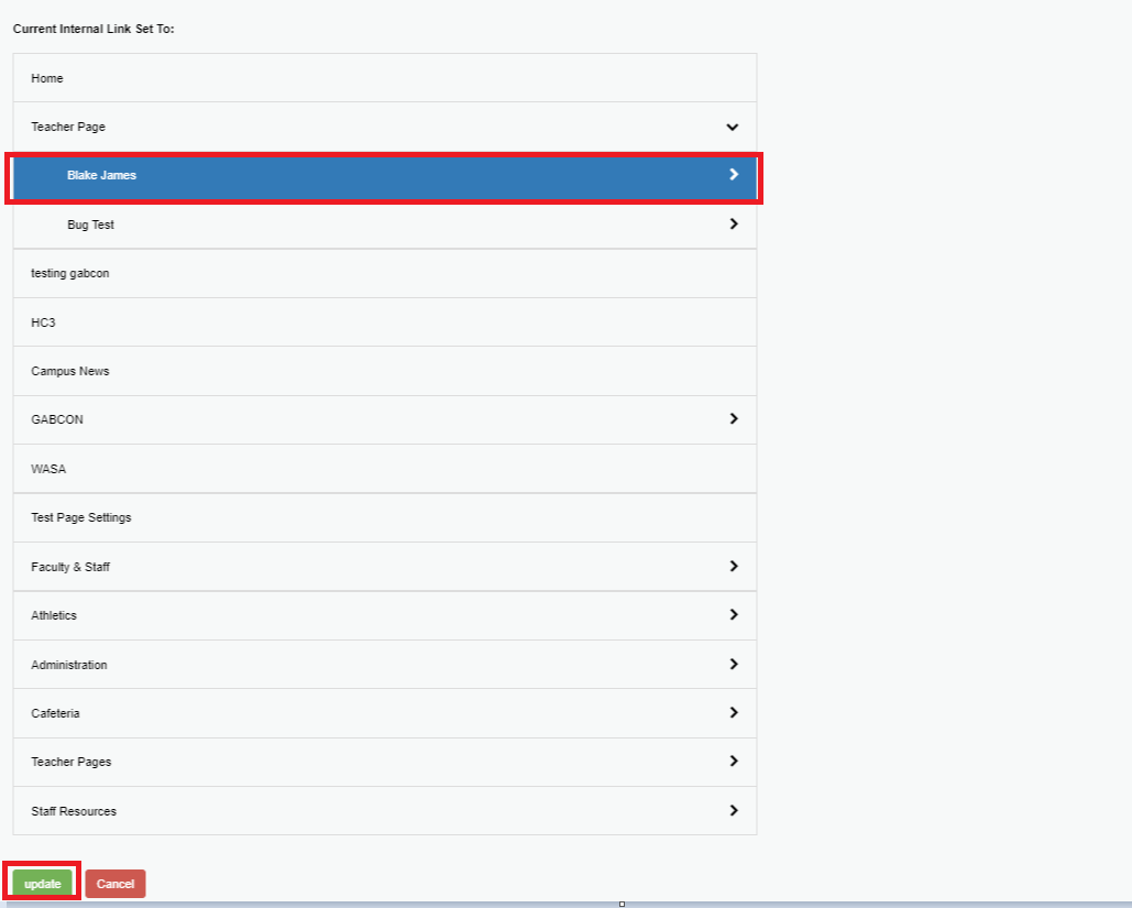 If you are setting up an Internal Link page you will select Internal Link and use the drop-down menus to select the page you want to link to.