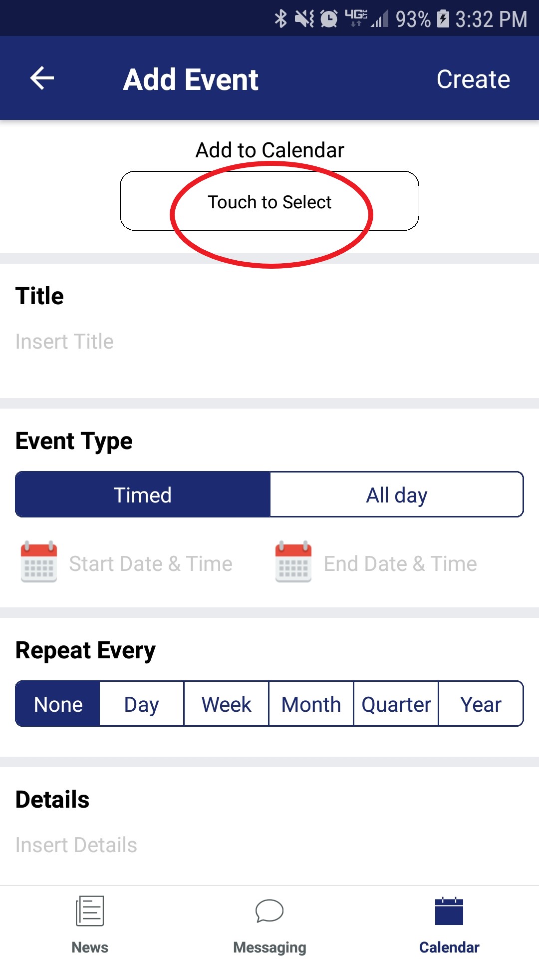 If you have editing rights to more than one calendar and have chosen to view multiple calendars in the app, the first option you will have is to choose which calendar you want to publish the event to.