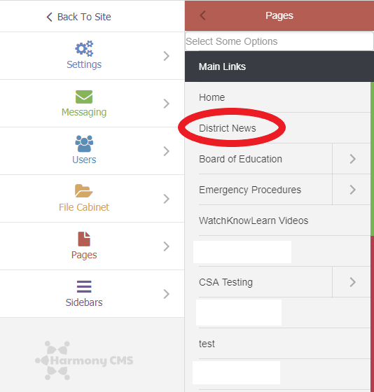 1. Login to Site Administration and go to Pages. Locate your News Articles Page and select it by clicking on the Name of the page.