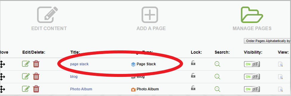 First, we will go to our Page Stack page and edit by clicking on the page title.