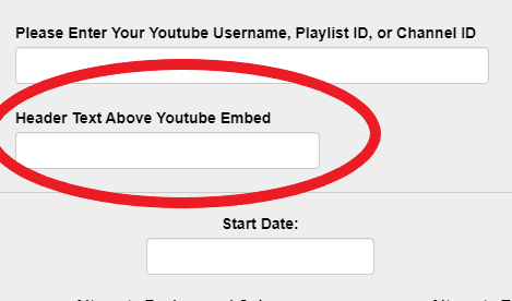 Once you have chosen which option you would like to display (Username and Channel will display a list of all videos you have uploaded, Playlist is a predetermined list of videos you have chosen) Select that option and past the ID in the box provided